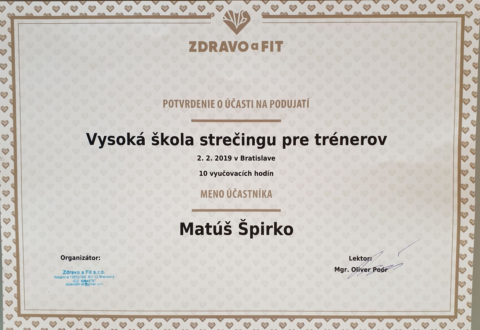 Časem jsem založil společnost s názvem COACH OF PEOPLE. Česky - trenér lidí. Tento název vychází z toho, že se snažím pracovat velmi lidským přístupem, být empatický a nastavit celý životní styl tak, aby vyhovoval klientovi. Motivovat ho a vést ho na cestě za jeho vysněnými výsledky.